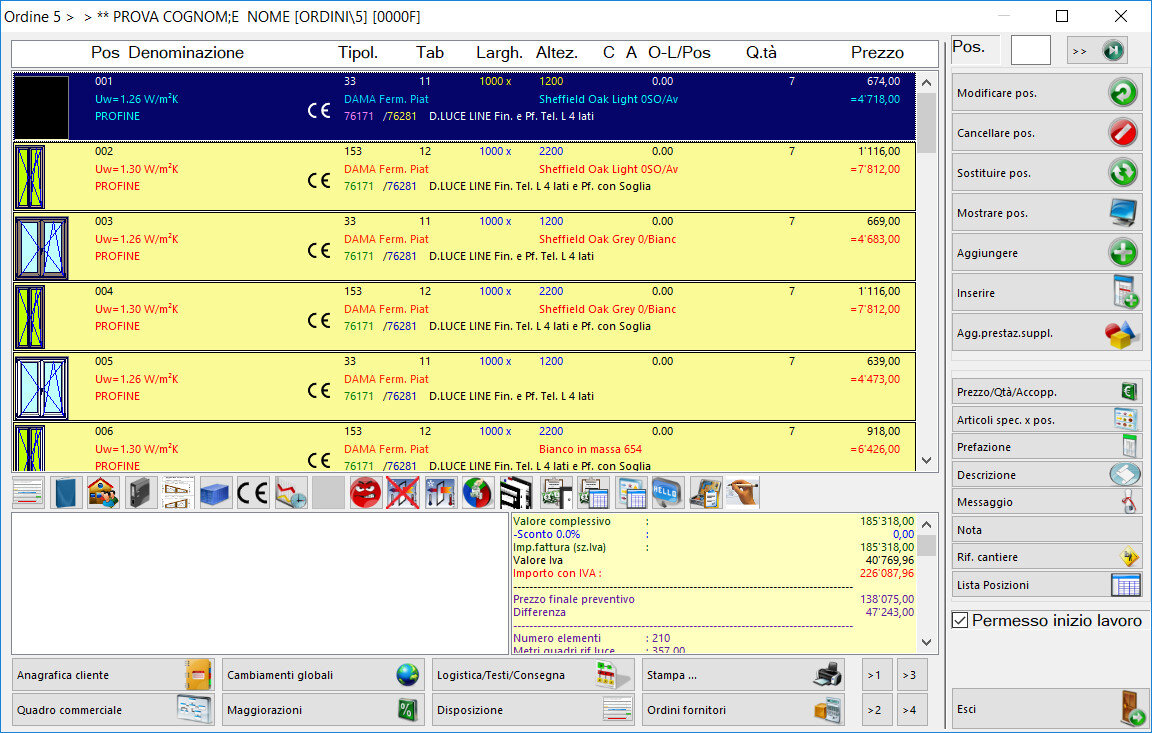Inoltre, è possibile introdurre gli sconti e quindi ottenere, senza l’ausilio di altri programmi, la stampa di una lettera di preventivo o conferma d’ordine completa dei disegni e dell’abaco dei serramenti. Il programma sarà anche in grado di calcolare le provvigioni legandole ad una scala costi.